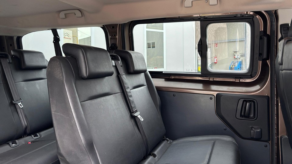 2 portes latérales coulissantes, 2 prises 12V, ABS, AFU, ASR, ESP avec aide au démarrage en côte, capteurs de stationnement arrière, airbags frontaux, airbags latéraux avant tête/thorax, airbags rideaux aux rangs 2 et 3, jantes en alliage, Pack Safety, sièges en cuir noir Claudia, Connect NAV DAB. |